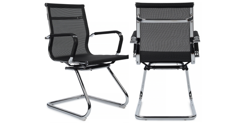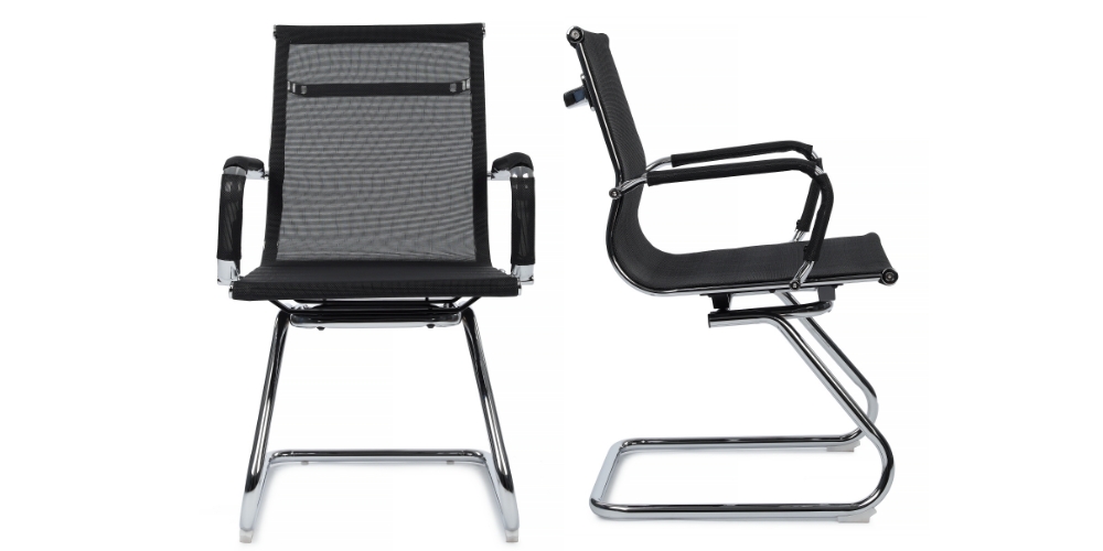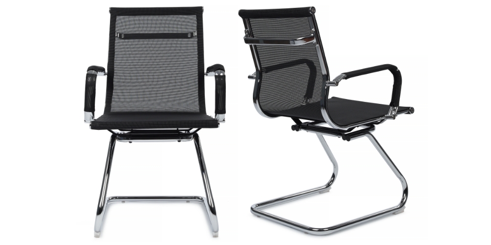 Подлокотники: металлические хромированные, с накладками из сетки в цвет кресла.